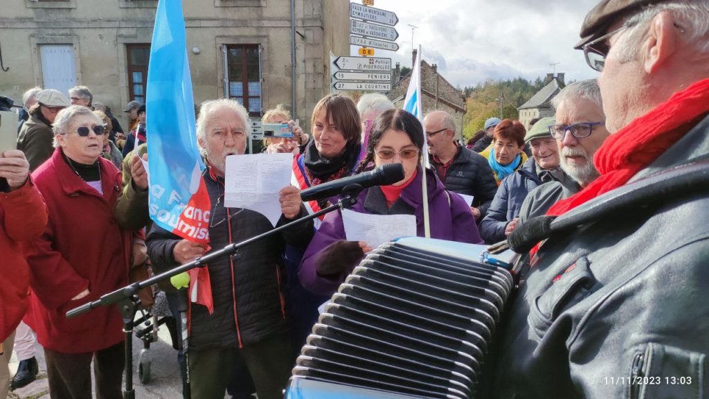 Sous la présidence de Régis Parayre, intervenant au nom du CLAMMG, plus de 200 personnes, venus de la Creuse et des départements voisins, ont écouté les discours des représentants de la LDH, du Mouvement de la Paix, de l’Union Pacifiste, de Lutte ouvrière, de l’UD CGT, de l’UD FO, de la FNLP, et aussi de Catherine Couturier, députée de la Creuse et de Pascale Martin, députée de Dordogne.