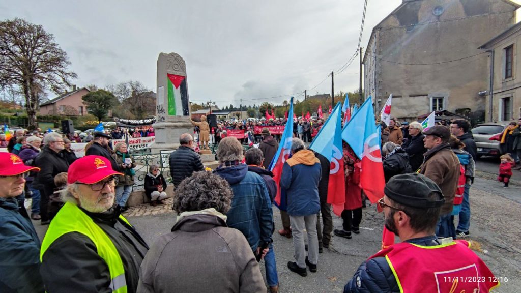 14 adhérents et sympathisants du Groupe Fred Zeller (LP Dordogne) ont participé, samedi 11 novembre, au rassemblement organisé par le CLAMMG (Comité Laïque des Amis du Monument aux Morts de Gentioux) devant le monument aux morts pacifiste de Gentioux, et dont c’était le centenaire.