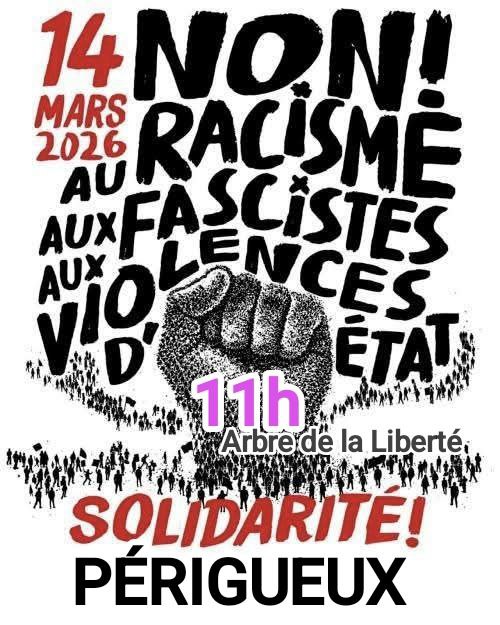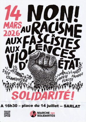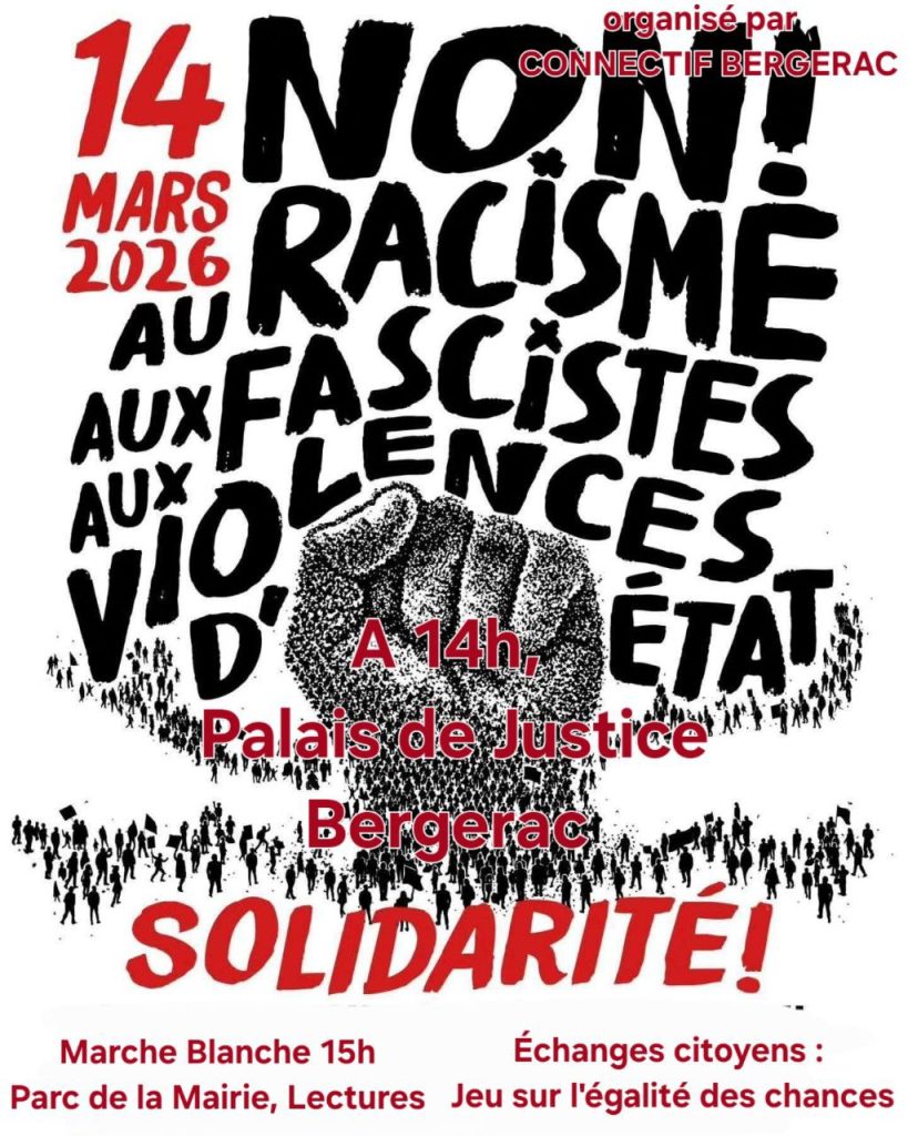 Samedi 14 mars 2026 – MARCHE DES SOLIDARITES – 3 rassemblements en Dordogne Continuer la lecture de « Samedi 14 mars 2026 – MARCHE DES SOLIDARITES – 3 rassemblements en Dordogne »