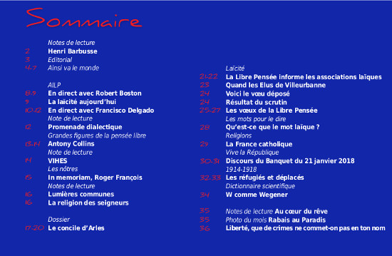 Il reste que la laïcité revient au cœur des préoccupations de l’Ecole publique. Les libres penseurs ne peuvent que s’en réjouir. Autre sujet de satisfaction : dans ce numéro, nous faisons une place particulière au vœu présenté par des Elus de Villeurbanne. Il n’a pas été adopté, mais a été présenté par un groupe courageux de l’opposition, et c’est une première, car il met en cause la loi Debré dans des termes d’une parfaite justesse. Je me permets de le citer : « La loi Debré, votée le 31 décembre 1959, a donné à l’enseignement privé confessionnel le statut de « service public d’enseignement ». Par ce dispositif, au mépris des principes républicains, l’État finance le principal concurrent de l’Enseignement public. C’est une concurrence « déloyale et faussée » par les pouvoirs publics eux-mêmes. »