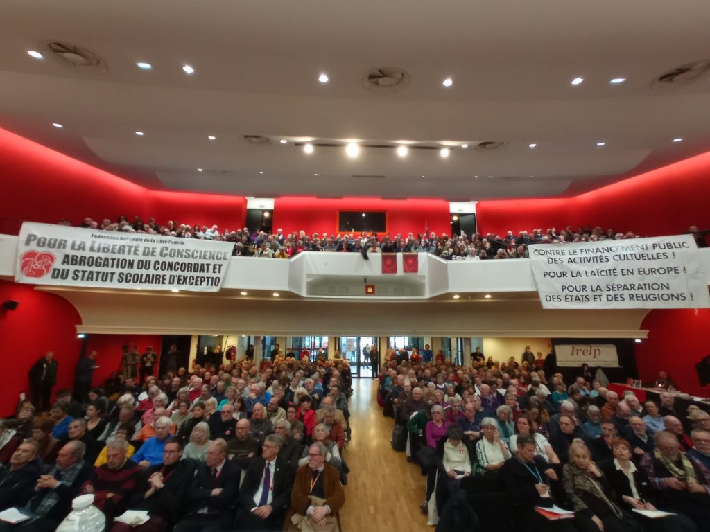 La Grande salle de Spectacle Eugène Hénafff de la Bourse du Travail était pleine à craquer et de 14H30 à 17H45, le public a écouté de manière studieuse et passionnée les différentes interventions de tout ce que compte l’authentique Mouvement laïque de ce pays. Le mot d’Ordre d’Abrogation de la loi Debré ! a été scandé massivement comme une exigence laïque.